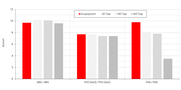 Verklebung unterschiedlicher Werkstoffe und Auslagerung in diversen Medien