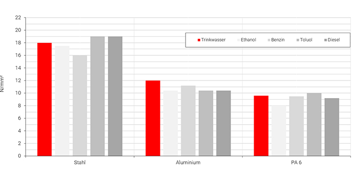 | ETHYLESTER | geringer | längerkettig etwas weicher | Metalle Kunststoffe Elastomere |