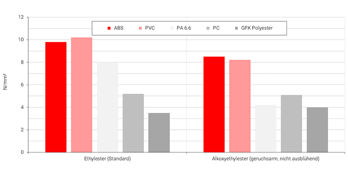 | BUTYLESTER | gering | längerkettig etwas weicher | Metalle Kunststoffe Elastomere |